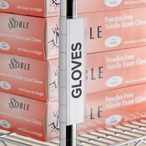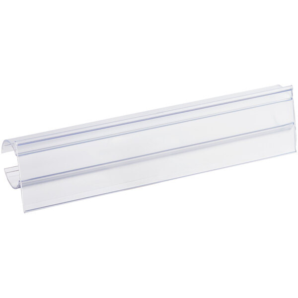 Protect labels from wear and tear with this Regency 6" x 1 1/4" clear vertical clip-on label holder for shelf posts! Made from durable plastic, this label holder shields labels (sold separately) from dust, dirt, tearing, and other damage in heavy-use environments. Its clear, matte cover is UV-treated and supports easy barcode scanning, helping labels stay readable and scannable over time.