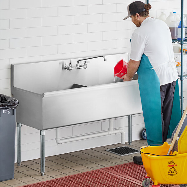 This Regency 60" 16-gauge stainless steel two compartment commercial utility sink is a great economical choice for an array of establishments.