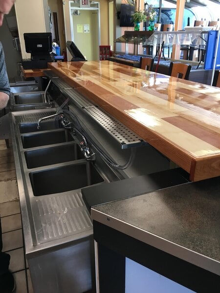 This has saved me from cleaning up so many spills. The top part comes off so you can whip the insides with some cleaner. It’s small so it hides super well. The edges are not sharp so I never get scratched when leaning over my bar. Really sturdy and can hold a good amount of drinks without bending. The drains work really well and have not been a problem for me. Would recommend.