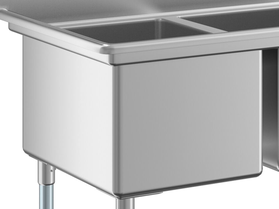 - Designed with (3) 14" deep bowls and rounded corners for easy cleaning