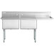Outfit your facility with a long-lasting sink with this Regency 76 1/2" stainless steel two compartment sink with 1 drainboard.