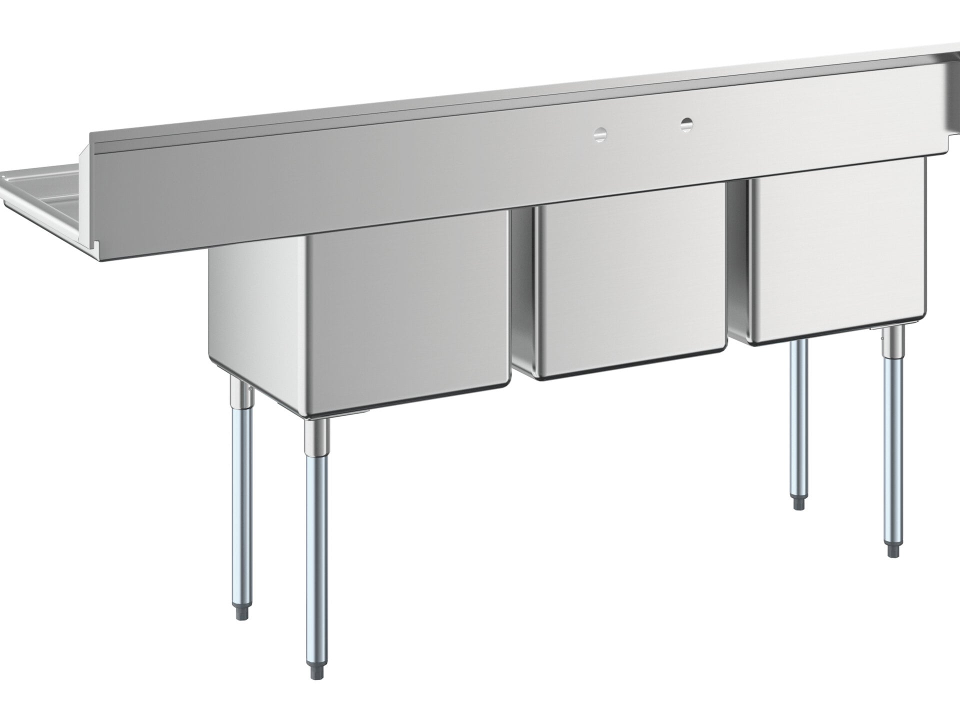 - Item #: 60s3181824glRegency 84 1/2" 16 Gauge Stainless Steel Three Compartment Commercial Sink with Galvanized Steel Legs and 1 Drainboard - 18" x 18" x 14" Bowls - Left Drainboard