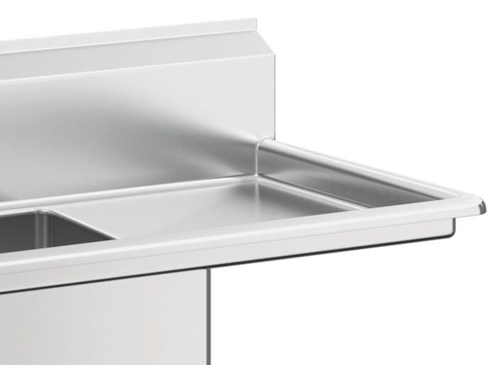 This sink features a sturdy, 18" drainboard so you can easily wash and dry dishes and utensils in one convenient location. It's dipped a minimum of 1/4" to facilitate better drainage, and the welded construction contributes to the long-lasting use and overall strength of this unit.