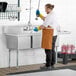 This sink comes with three bowls, making it ideal for setting up a washing, rinsing, and sanitizing station. The 14" deep bowls are die-stamped to a minimum of 1/4" to ensure proper drainage. Plus, each bowl includes a 3 1/2" basket strainer to catch food debris, which prevents the drain from clogging. For easy cleaning, each compartment has rounded corners so you can rinse and wipe down the sink.