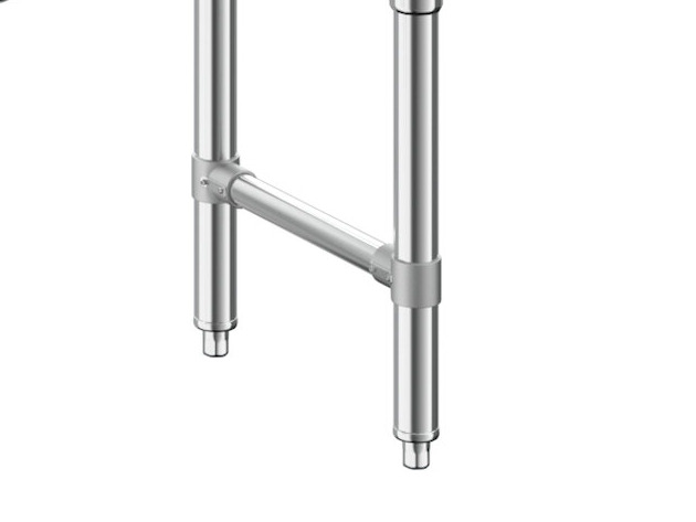The legs are constructed of 1 5/8" diameter stainless steel with stainless steel cross-bracing and adjustable plastic feet for added stability.