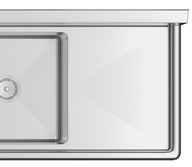 This sink features a sturdy, 18" drainboard so you can easily wash and dry dishes and utensils in one convenient location. It's dipped a minimum of 1/4" to facilitate better drainage.