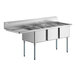 - Item #: 600s324241grRegency 96 1/2" 16 Gauge Stainless Steel Three Compartment Commercial Sink with Galvanized Steel Legs and 1 Drainboard - 24" x 24" x 14" Bowls - Right Drainboard