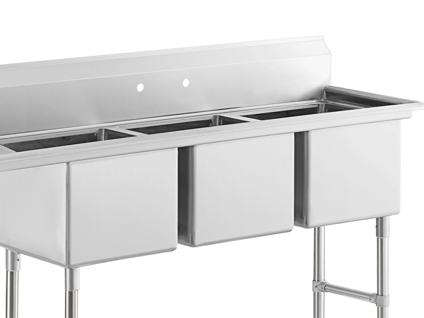 - Item #: 60s3181824xlRegency 84 1/2" 16 Gauge Stainless Steel Three Compartment Commercial Sink with Stainless Steel Legs, Cross Bracing, and 1 Drainboard - 18" x 18" x 14" Bowls - Left Drainboard
