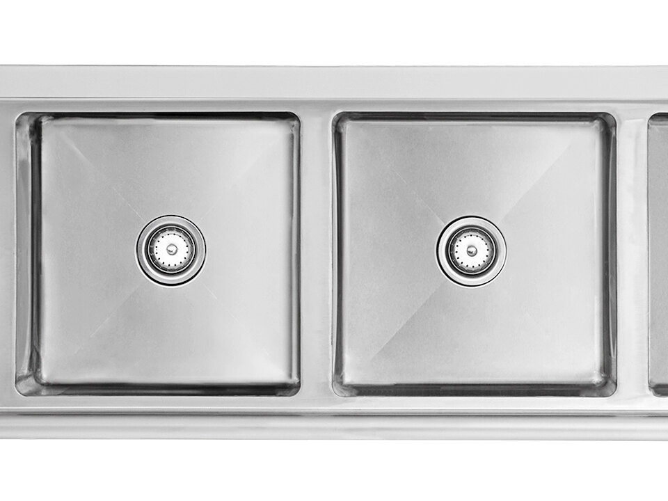 - Designed with (3) 14" deep bowls and rounded corners for easy cleaning