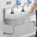 Make sure the employees at your industrial facility always have the ability to wash their hands by using this Regency single-hole hand sink with 4 faucets. It is made of durable stainless steel for longevity and comes with the faucets installed for easy installation. This sink is especially convenient because it mounts directly to the wall and does not need a countertop for support.