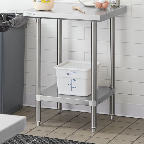 Add valuable storage space to your Regency work table with this Regency adjustable stainless steel work table undershelf! This undershelf will work with 24" x 24" tables to provide an extra shelf for storing items like frequently used prep tools, cutting boards, bar towels, oven mitts, pans, trays, and more! Since this shelf is adjustable, you can move it higher or lower to accommodate larger items like some types of light equipment or large mixing bowls.