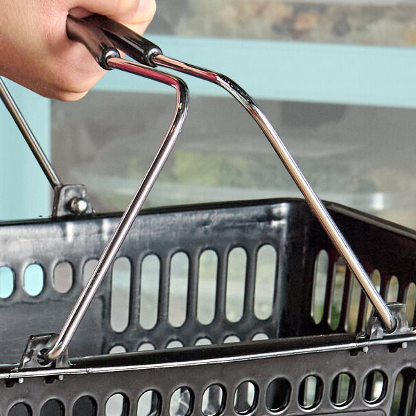 The basket's two steel handles offer superior strength and support, making it much stronger than traditional baskets with plastic handles. Plus, each handle has a black grip for your customers' comfort while shopping.