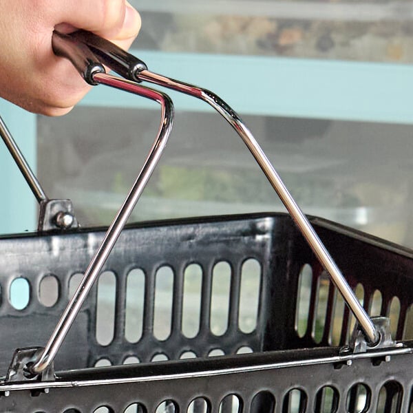 The basket's two steel handles offer superior strength and support, making it much stronger than traditional baskets with plastic handles. Plus, each handle has a black grip for your customers' comfort while shopping.