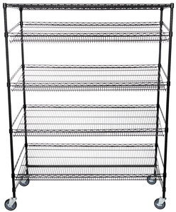 From chips and granola bars to freshly-baked loaves of bread, merchandise is displayed conveniently and attractively with this merchandising rack. Built with a sturdy, 3-sided frame, the rack comes with a total of 5 shelves, 4 of which are slanted to ensure maximum visibility. A sleek, black epoxy finish gives the rack location versatility too, as it's well-suited to both dry and damp environments. By equipping your convenience store, supermarket, farmers' market, or other retail business with this Regency rack, your customers will be able to easily see all of the great products you have to offer!