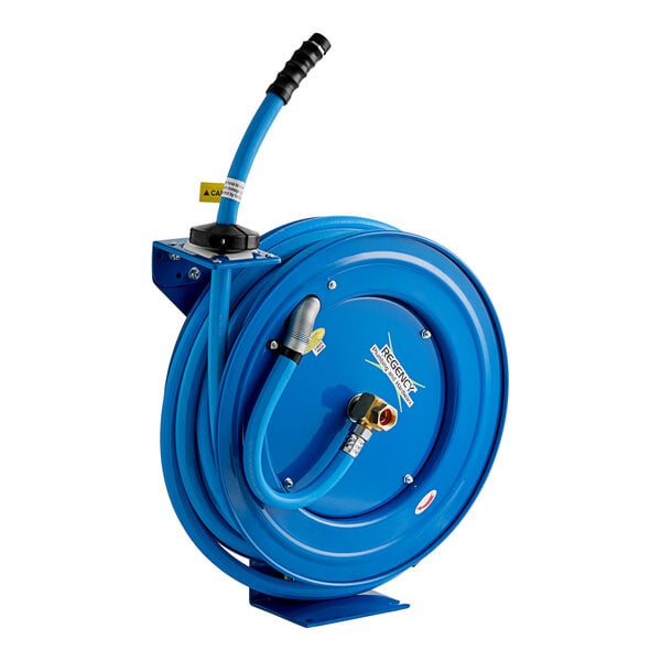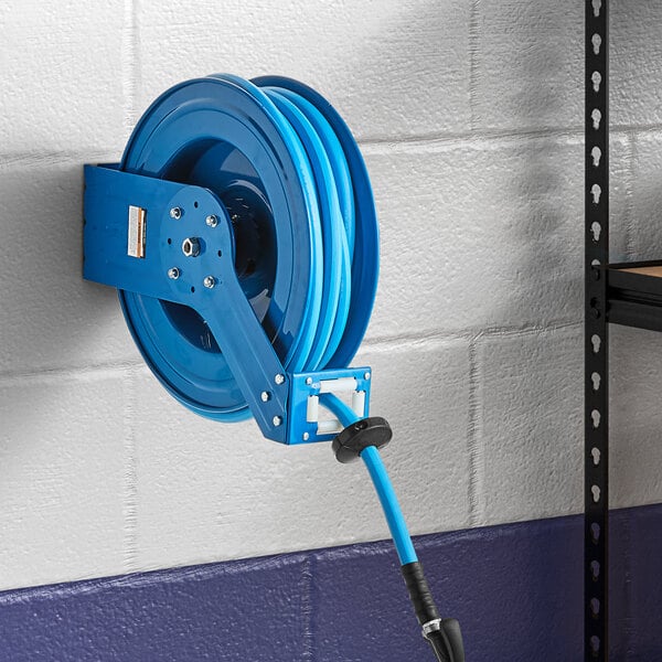 Equip your business with the Regency blue powder-coated steel open hose reel with a 50' hose!