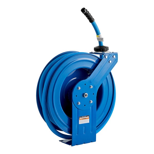 This item is made with a blue powder-coated, corrosion-resistant steel housing for durable, long-lasting use and includes (1) 50' hose with a 3/4" inner diameter for air and water applications.