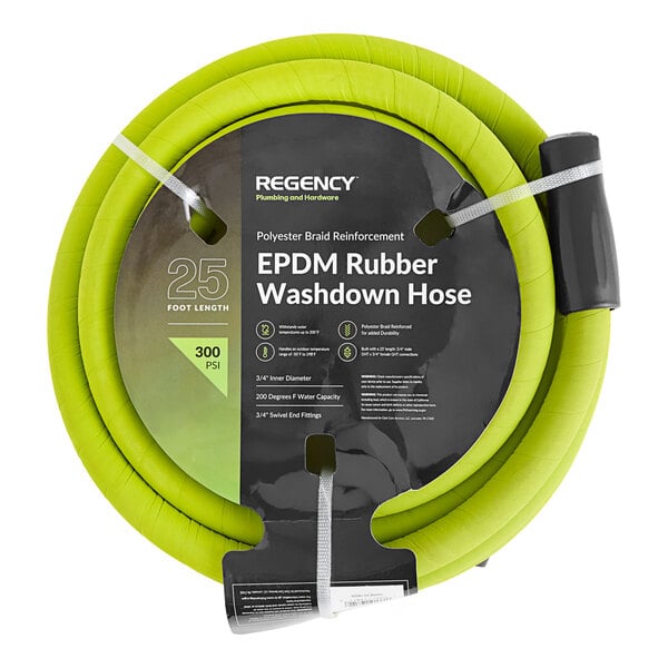 - Item #: 600wdh3425Regency EPDM 25' x 3/4" Polyester Braid Reinforced Rubber Washdown Hose with Stainless Steel 3/4" Swivel MGHT and 3/4" FHGT Connections