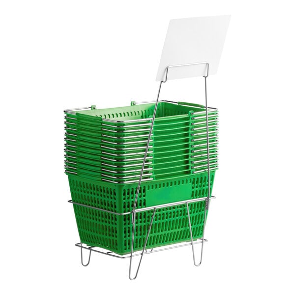 Quality shopping baskets are imperative to a positive shopping experience at your store. Ideal for customers looking for a few quick purchases, these baskets allow them to easily get in and out without having to push around a bulky grocery cart. A perfect addition to delis, supermarkets, bodegas, convenience stores, and any other retail operation where carrying assistance is needed, this shopping basket kit is just what your shoppers are looking for! The kit includes 12 shopping baskets, 1 basket stand, and 1 welcome sign.