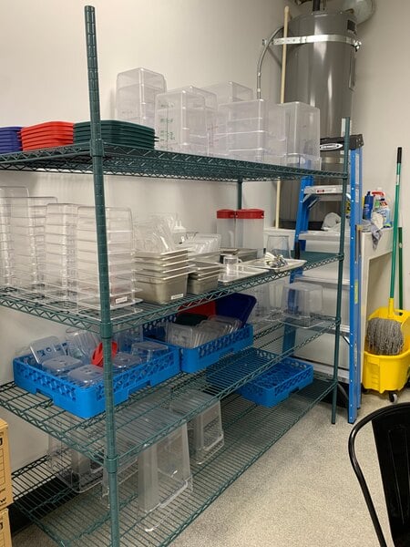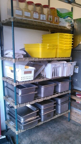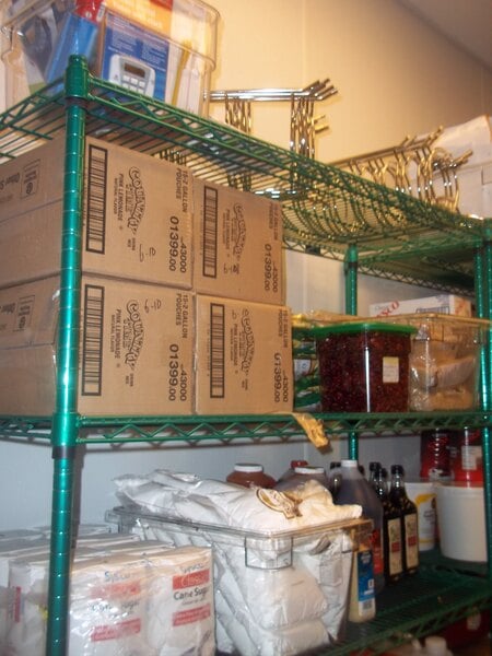 This shelving unit is perfect for my walk-in refrigerator/freezer. The green epoxy coated shelves are nice and spacious for most anything and are food safe. Allow for easy cleaning and are very easy to put together.