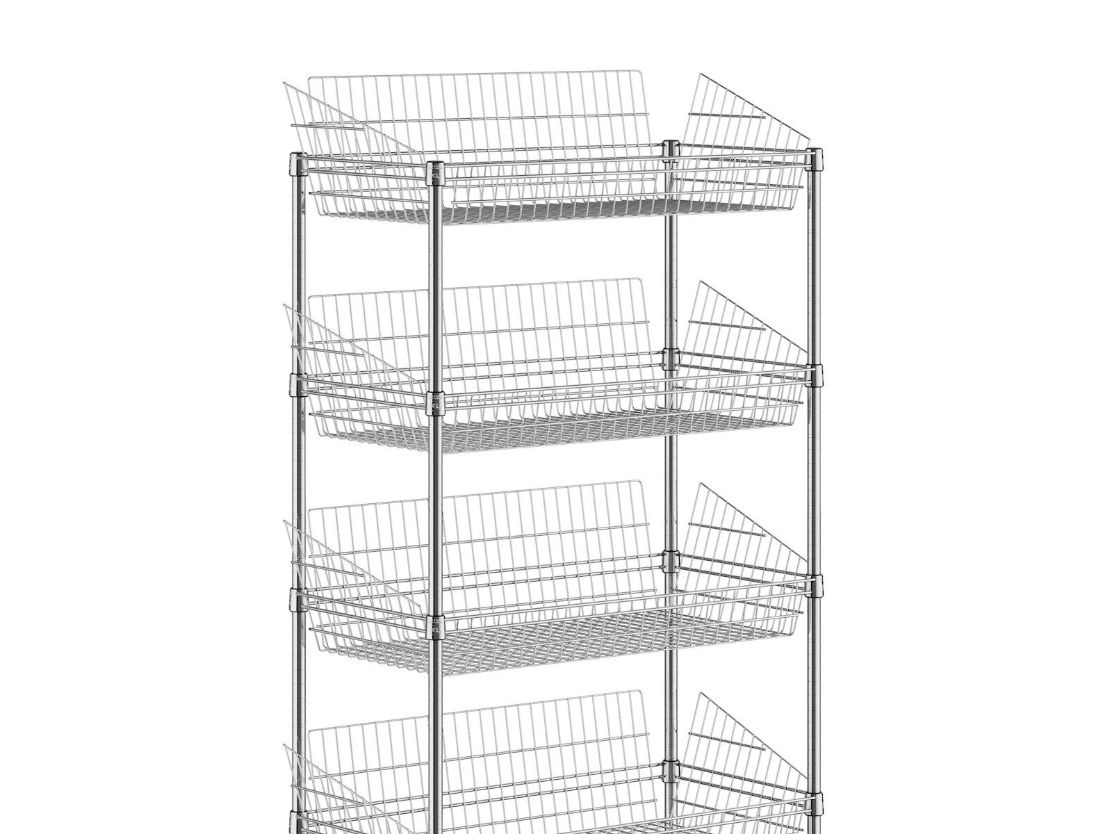 This convenient basket display provides ample storage for bulky items, and it has baskets with slanted sides to show off your product better than traditional baskets. This storage basket display can also be used to store impulse items, overstock items for quick selling, or to store supplies for your staff.
