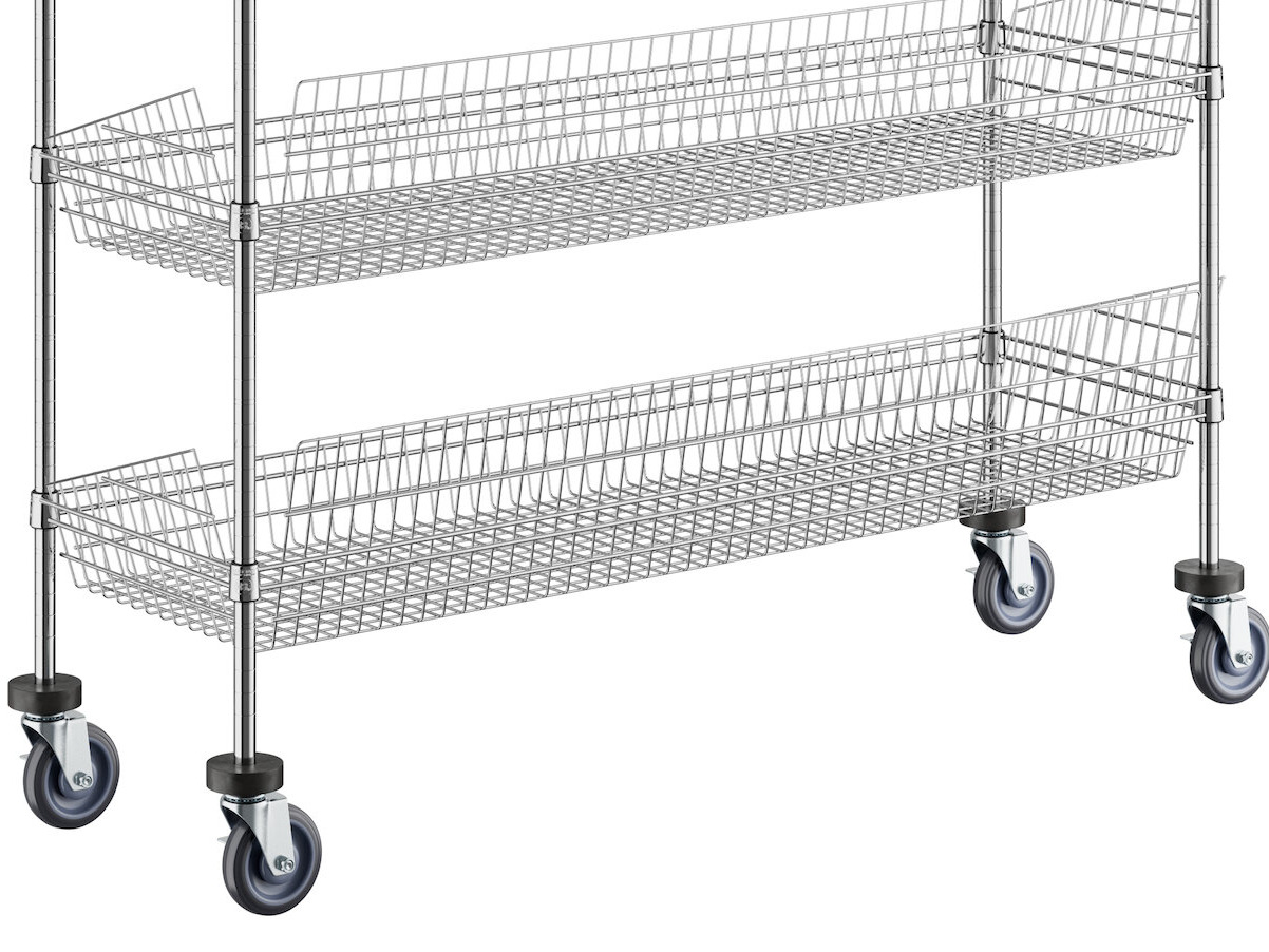 View All ItemsStore and display items at your bakery, produce stand, or gift shop using this Regency 18" wide chrome mobile 5 basket storage display stand!