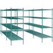 This Regency walk-in shelving kit is a great way to quickly and easily outfit a larger space with shelving, such as a walk-in unit. A durable, green epoxy coating over the posts and shelves gives your shelving system the durability needed to stand up to frequent loading and unloading, while also providing the corrosion resistance that's essential inside a walk-in.