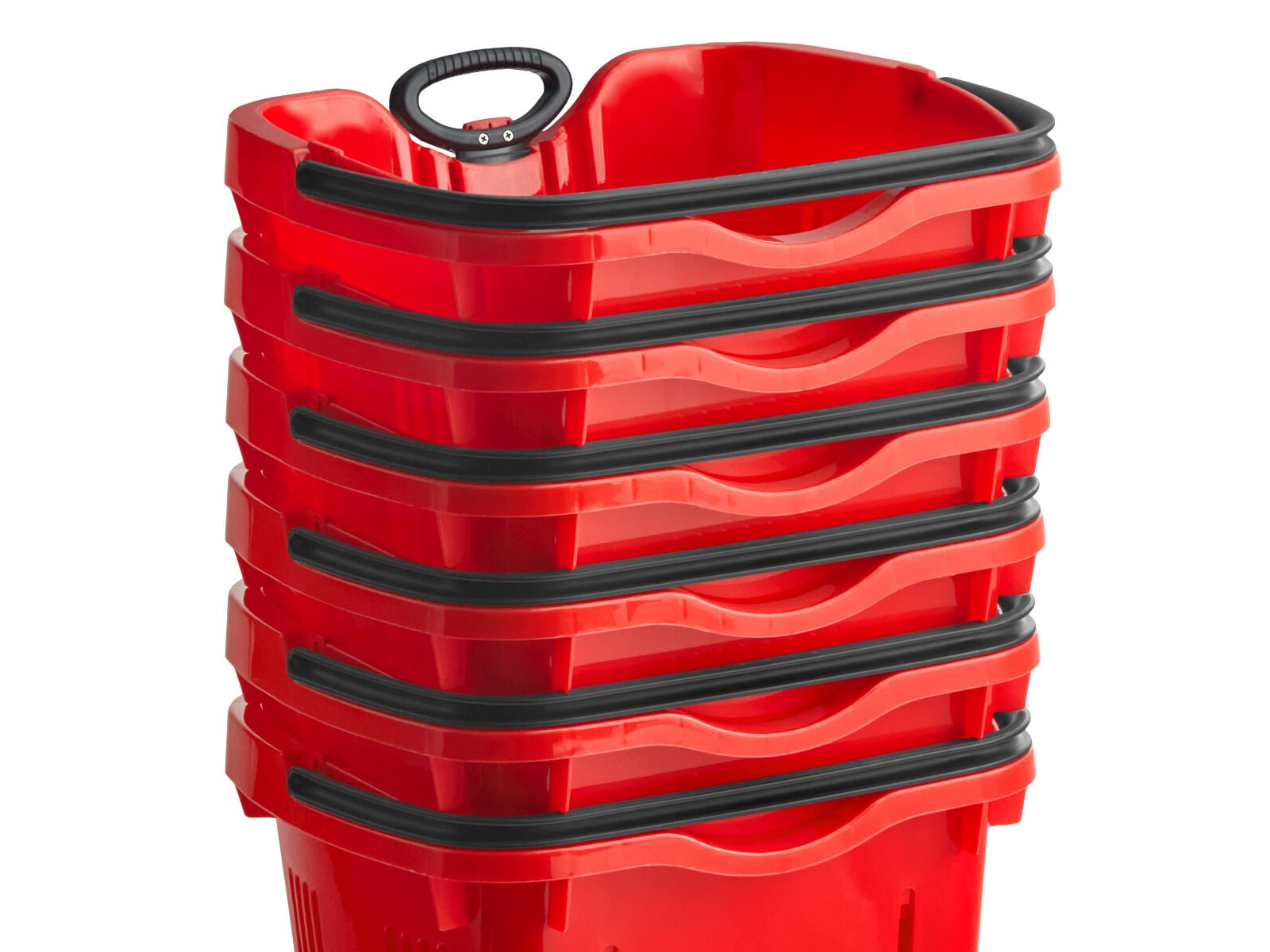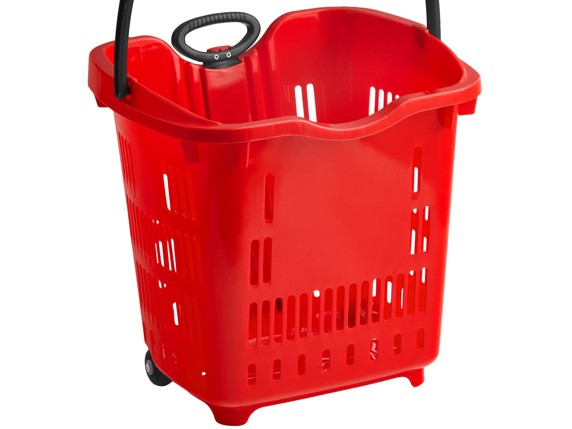 I got one of these Regency red plastic grocery .market shopping baskets with wheels. It is so helpful! We use it like a wagon in the summer to take toys and lunches with us to the park. Very convenient.