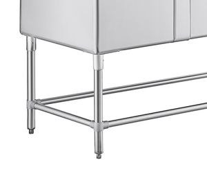 This sink sits on (4) stainless steel legs, which feature adjustable stainless steel bullet feet to accommodate uneven floors. The stainless steel legs provide your sink with a solid, reliable foundation to rest upon, so you always have somewhere to wash, rinse, and sanitize dirty dishes. Additionally, this sink features front-to-back and left-to-right cross bracing for maximum stability.