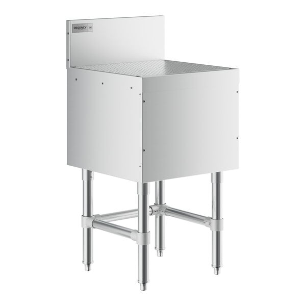 This Regency Spec Line 18" x 19" stainless steel underbar drainboard provides space for your freshly washed glasses to dry, allowing you to quickly and easily prep mojitos, Long Island iced teas, beer, or any number of your popular beverages.