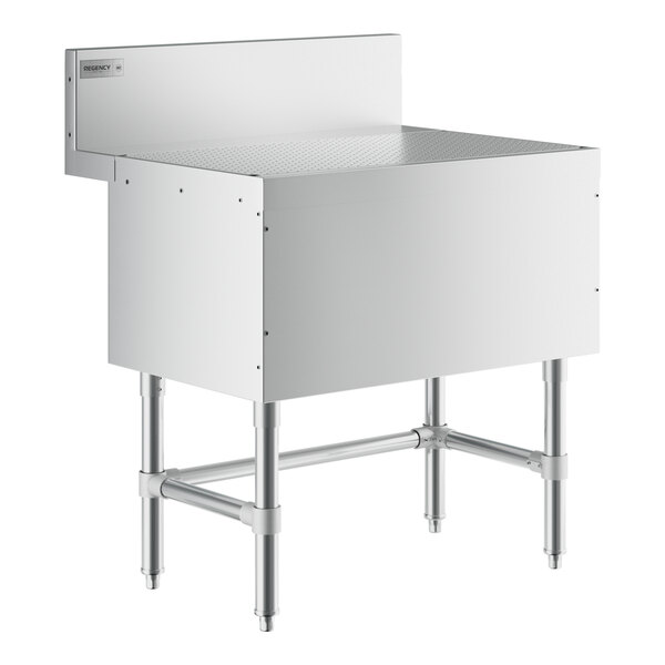 This Regency Spec Line 30" x 24" stainless steel underbar drainboard provides space for your freshly washed glasses to dry, allowing you to quickly and easily prep mojitos, Long Island iced teas, beer, or any number of your popular beverages.