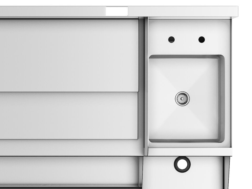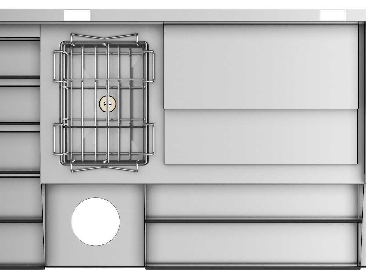 This unit has an insulated drop-in ice chest that comes equipped with a 1 1/2" drain and 4" tailpiece, along with 2 plastic bottle holders for organized storage.