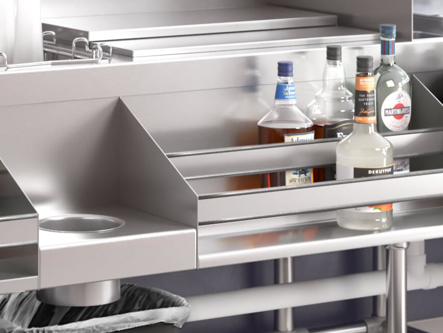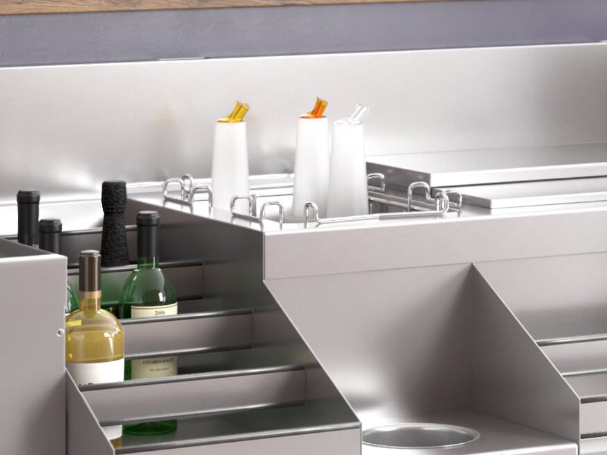 The double speed rail provides quick access to frequently used liquor and mixers, ensuring smooth, swift service during peak hours.