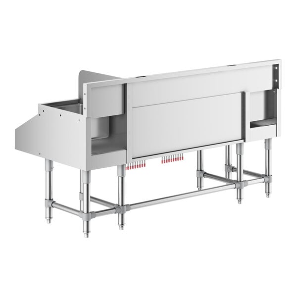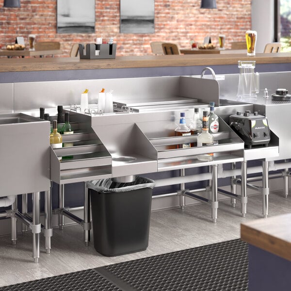 Featuring a 12" recessed drainboard with a drain and removable perforated insert, this cocktail station simplifies cleanup and maintenance. Featuring a liquor display rack, this cocktail station expands your available liquor selection and provides a sleek presentation. Elevate your bar service with this efficient and durable cocktail station that is designed to streamline operations and enhance the overall customer experience.