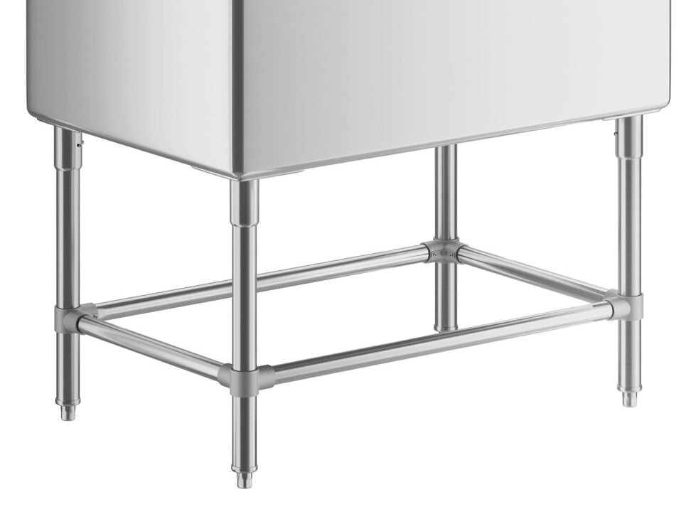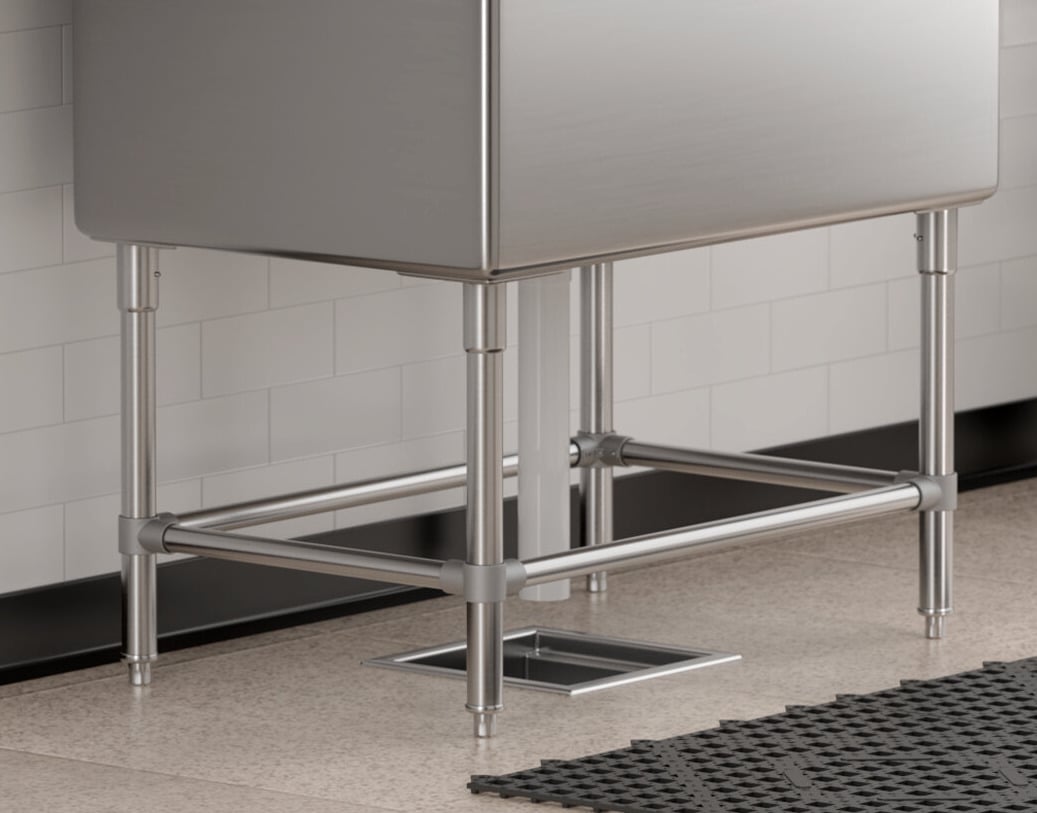 This sink sits on 4 stainless steel legs, which feature adjustable stainless steel bullet feet to accommodate uneven floors. The stainless steel legs provide your sink with a solid, reliable foundation to rest upon, so you always have somewhere to wash, rinse, and sanitize dirty dishes.
