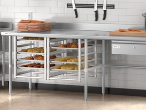 The gauge refers to the thickness of the stainless steel used to make this work table. The lower the gauge number, the thicker the material. Low gauge stainless steel work tables are ideal for heavy-duty food preparation applications where your unit must withstand repeated heavy blows, while higher gauge tables offer a budget-friendly option for light-duty everyday tasks. Learn more about which gauge is right for your establishment in our Commercial Kitchen Work Table Guide.