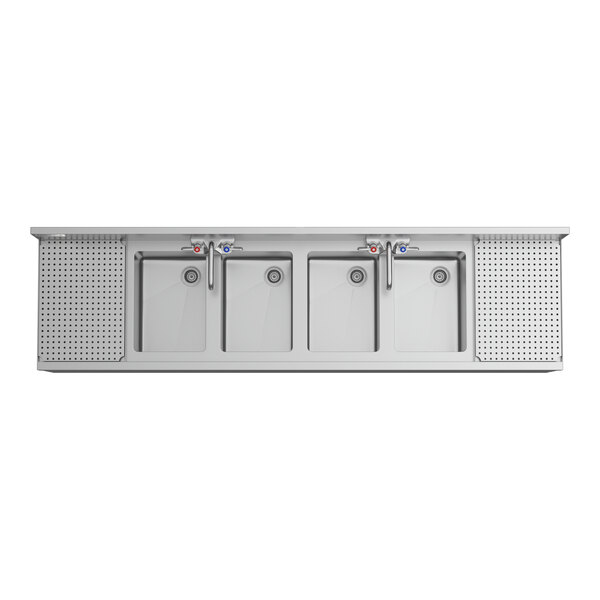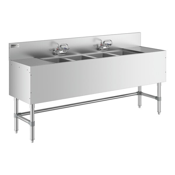 Regency Spec Line Stainless Steel Four Bowl Underbar Sink with (2) 12" Drainboards and 2 Faucets - 19" x 72"