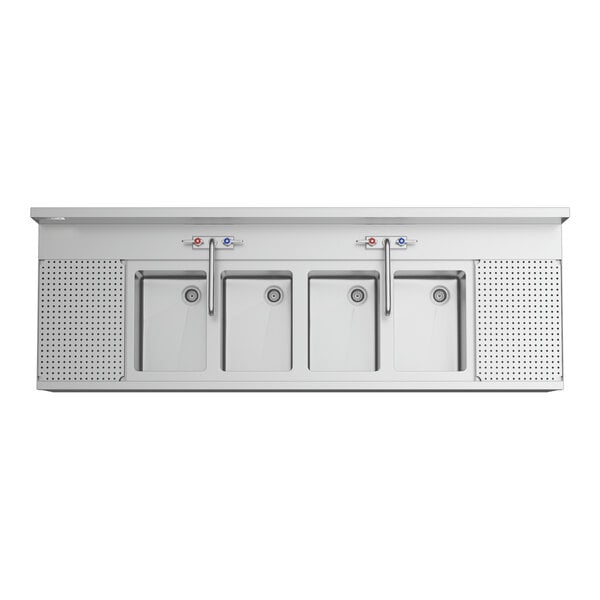 Regency Spec Line Stainless Steel Four Bowl Underbar Sink with (2) 12" Drainboards and 2 Faucets - 24" x 72"