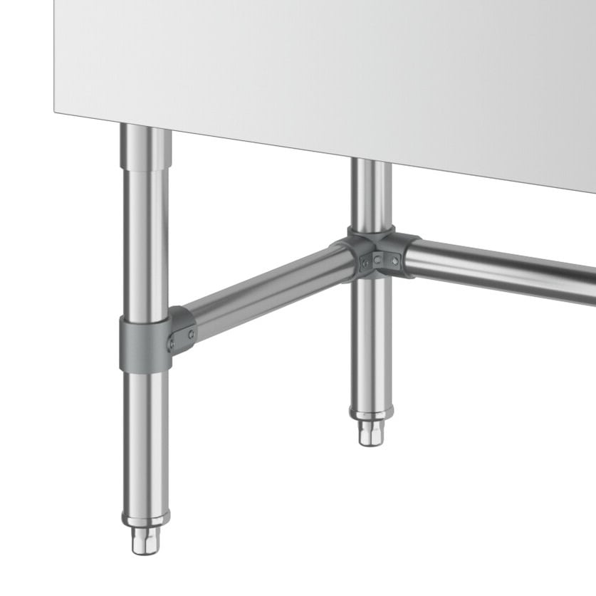 This underbar sink is constructed from 18 gauge type 304 stainless steel for corrosion resistance and optimal durability. It sits on 4 stainless steel legs to provide your sink with a solid, reliable foundation to rest upon. Additionally, this sink features U-shaped cross bracing for maximum stability.