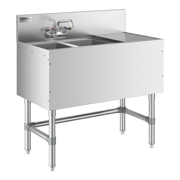 - Item #: 60b2193612rksRegency Spec Line Stainless Steel Two Bowl Underbar Sink with 12" Right Drainboard and Faucet - 19" x 36"