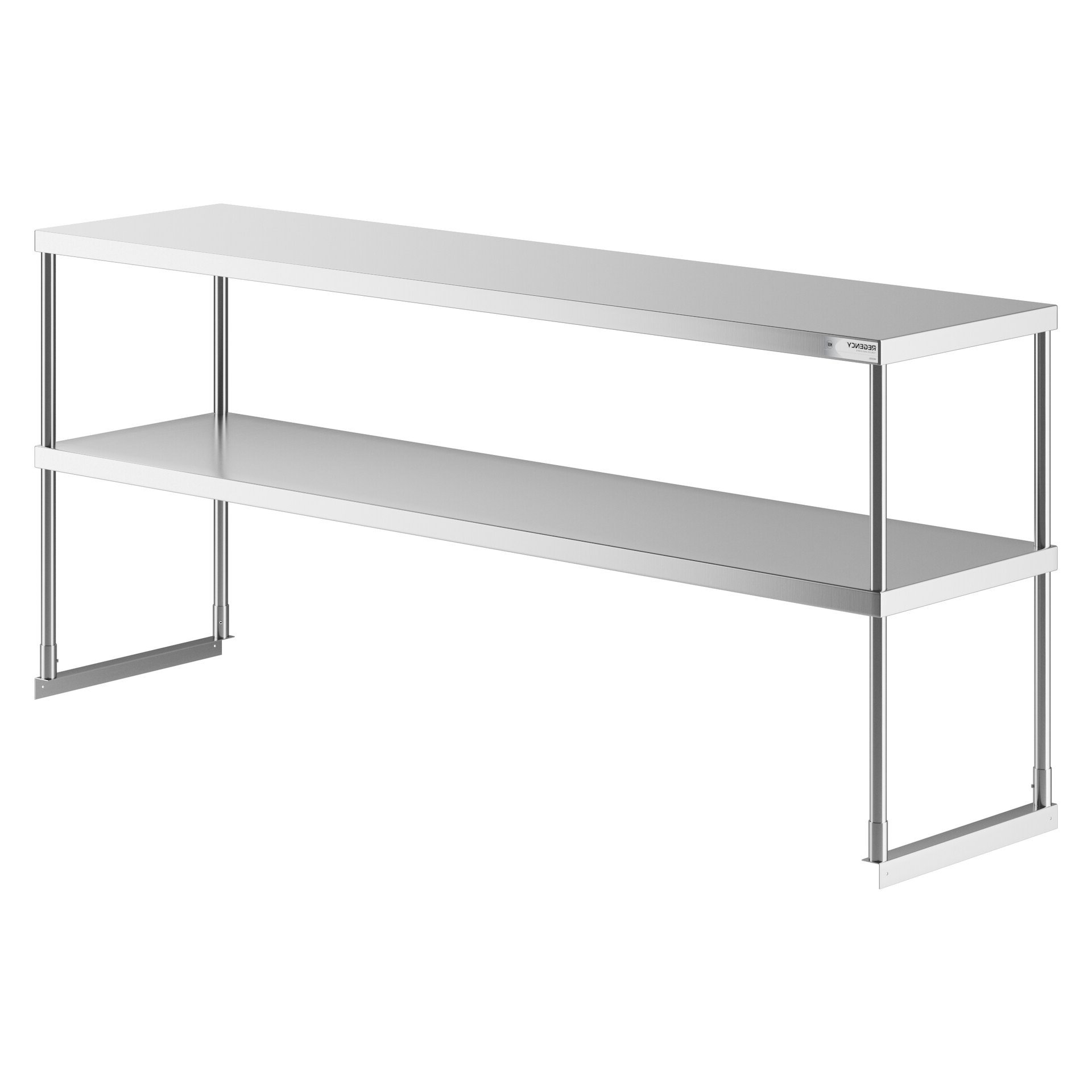 Awesome stainless steel double deck overshelf, we had this for couple years already. we place it above our small refrigerator, its very strong and sturdy, had a lot space, great buying for extended space in kirchen restaurant business!