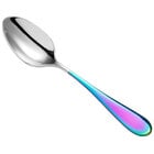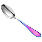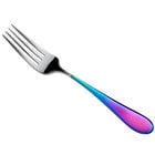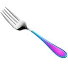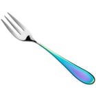 Each piece in this versatile collection is perfectly weighted and balanced to feel comfortable in your patrons' hands. Because of its depth, this flatware can be paired well with a variety of color schemes. It has hints of blue, purple, green, and pink all in one piece! Its modern silhouette is perfectly complemented by its bright color, and this cocktail fork is the perfect, eye-catching addition to your establishment!
