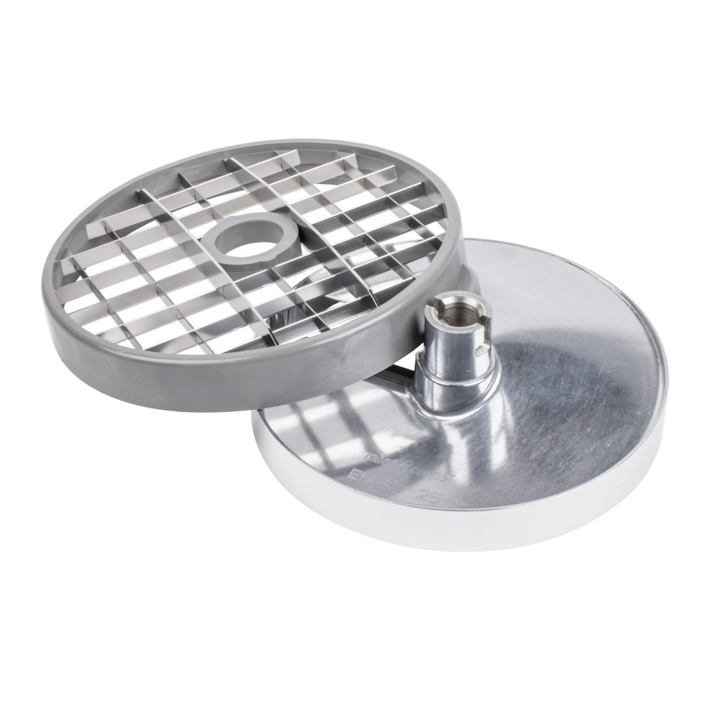 Dice 1" x 1" (25 mm x 25 mm) chunks of potatoes, onions, tomatoes, and more with the Robot Coupe 28115W dicing kit! This dicing kit is compatible with select Robot Coupe food processors made as part of the "D series" or later. It includes a slicing disc and dicing grid.
