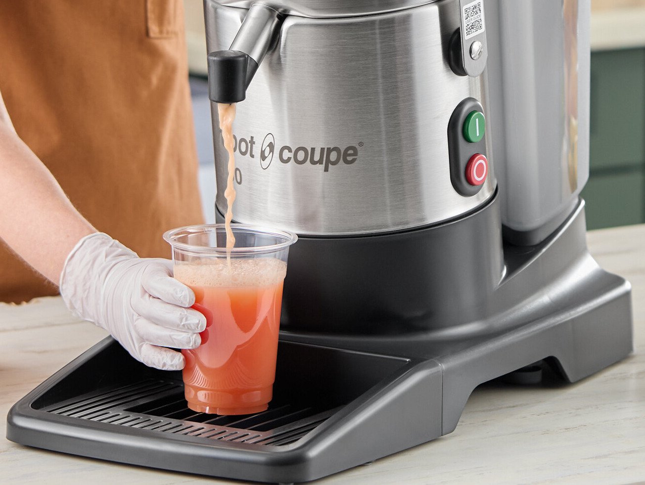 Produce flavorful, healthy juice from a wide array of fruits and vegetables using the Robot Coupe Buffet juicer!