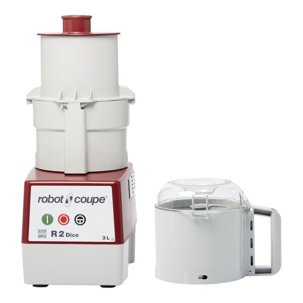 Robot Coupe R2 DICE Combination Food Processor with 3 Qt. / 3 Liter Gray Bowl, Continuous Feed & 4 Discs - 2 hp