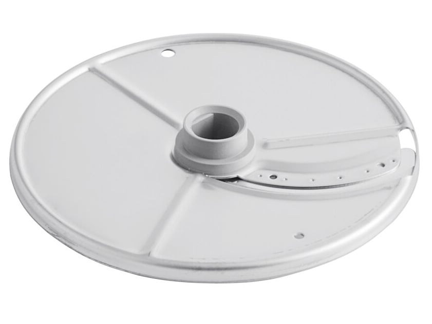 The slicing disc that comes with this unit makes a 5/32" (4 mm) cut, and is great for tasks like slicing cucumbers or carrots, making garnishes or ice cream toppings, and much more.