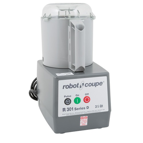 Puree, mix, chop, and blend dozens of foods with the Robot Coupe R301B 4 qt. / 3.7 liter bowl food processor! This bowl food processor features a 1 1/2 hp motor for outstanding power, and its gray plastic bowl provides outstanding durability. The included stainless steel "S" blade easily cuts through a wide variety of foods, and thanks to its simple control panel, you can teach new employees how to use this unit in no time.