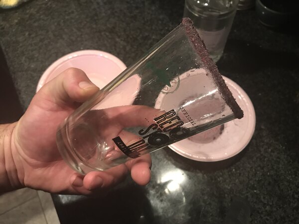 I ordered this to rim my pomegrant cosmo with. Lime juice is not strong enough for it to stick with. Use simple syrup if you want to get a nice rim on the glass. Tastes delish!!!