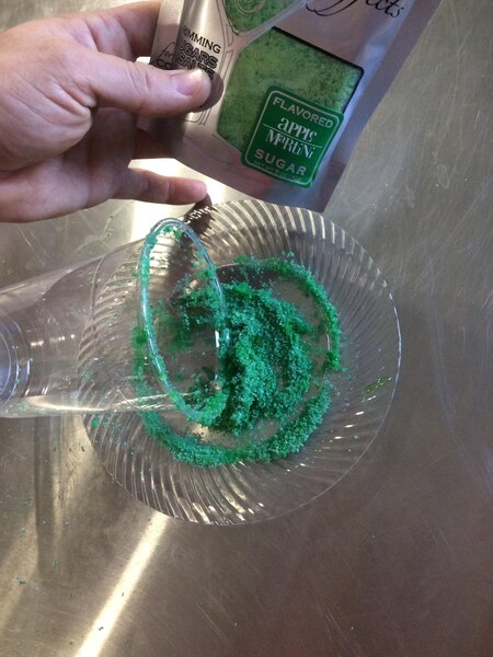 Your bar patrons will love the vibrant green color of this rimming sugar and the great taste. We use it to rim the shot glasses of our caramel apple shooters.