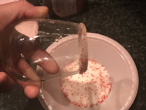 This peppermint rimming sugar is pretty and tasty! It really takes your holiday cocktails to the next level. Simply dip the rim of your glass in lime juice or simple syrup, then dip in the sugar. This is worth the money!