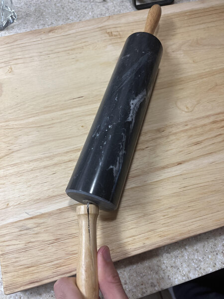 Unfortunately the wooden handle on this product split completely the very first time I picked it up which is a shame for a relatively pricy rolling pin. Id like to give the benefit of the doubt that this is a one-off occurrence and I am just unlucky, but I would not purchase again. I am however pleased with the appearance of the marble and it has a nice weight. But nonetheless it or the handles need to be replaced upon first usage. Product would be improved with a longer dowel rod to distribute the stress on the handle as it only sits in the handle about an inch